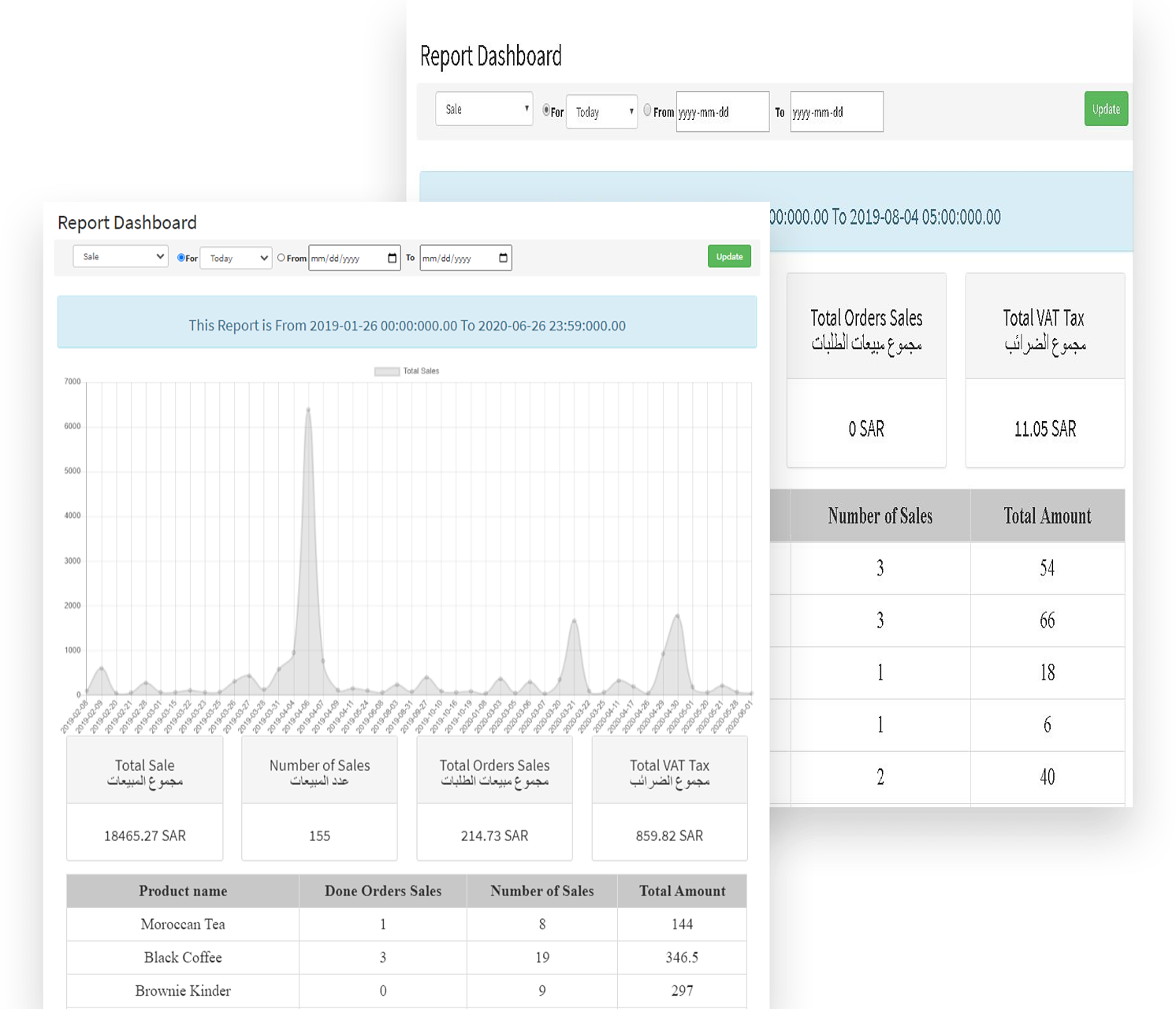 نظام المبيعات السعودي يمتاز بتقارير واضحة تساعدك في معرفة حالة مبيعات متجرك بكل سهولة. و أيضا يسهل لك معرفة افضل واسوء المنتجات مبيعات